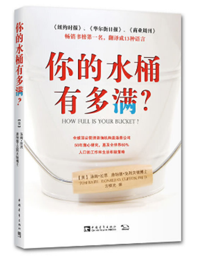 每个人都有一只看不见的水桶和一把看不见的勺子,水桶满溢使人乐观积极,水桶见底令人丧气消极;我们每时每刻都面临一个选择:可以为各自水桶加水,也可以从各自水桶舀水,但这个至关重要的选择却深刻影响着我们的人际关系、工作效率、健康和幸福。