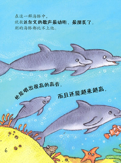 达尔文是一只爱唱歌的小海豚,他的歌声非常动听。可是今天,达尔文的歌声却把大家吓坏了,他不仅唱得特别难听,还引来了大鲨鱼。危难之时,他该怎么办呢?他能急中生智,打败大鲨鱼吗?