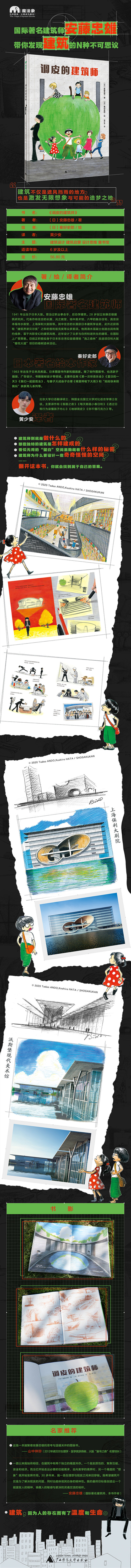 ★大阪中之岛“童书之森”童书馆是安藤忠雄主持设计的建筑,是安藤忠雄献给大阪儿童的礼物,也是本书故事的舞台。本书展现了“童书之森”里余白空间的独特魅力,呈现了安藤忠雄的巧思与独特的建筑理念。 ★建筑不仅是遮风挡雨的地方,也是激发无限想象与可能的造梦之地。那些看似无用的空间、乍一看不知道如何利用的空间、只有孩子才进得去的空间......孩子在这样的建筑空间里,自由地玩耍、阅读、交朋友,如何利用这些空间是孩子的自由,人的想象力和个性也因此而萌发。 ★一栋建筑是怎样建成的?建筑师到底是做什么的?那些独特的建筑是怎样被设计出来的?一本书带孩子走进奇妙的建筑世界,了解建筑设计背后的有趣故事,欣赏建筑的美。 ★京都大学iPS细胞研究所前任所长、大阪“童书之森”名誉馆长山中伸弥倾情推荐。