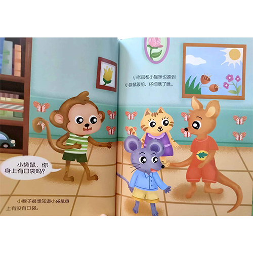 本分册讲述了好斗的小袋鼠上幼儿园的故事。小袋鼠来到幼儿园,因一件小事和小朋友们发生了摩擦,他气得要打小猴子、小猫咪、小老鼠。后来,在绵羊老师的调解下,小袋鼠和大家和好,很好地融入了幼儿园的生活
