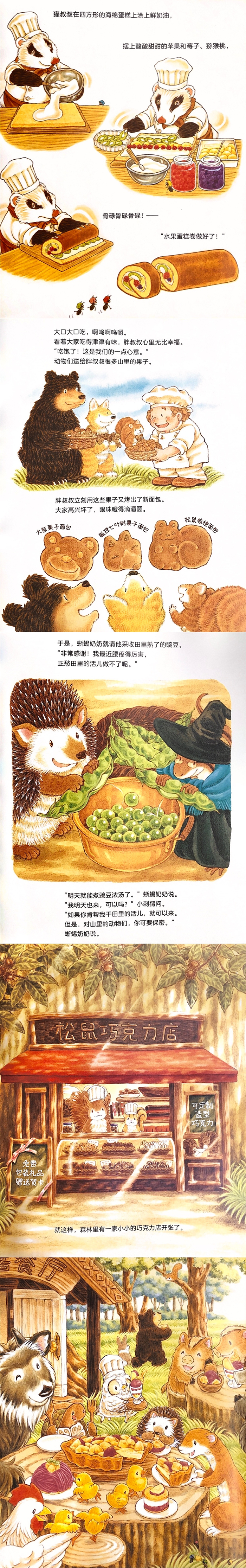 《大排长龙》是一套属于小吃货的绘本。哄娃神器,连续3个半月不换书!越看越饿,下午4点后、睡前都不要看,看了做梦全是美食!咕咕叫山有六家大排长龙的美食店!蚂蚁蛋糕店、胖叔叔面包店、蜥蜴奶奶浓汤店、大熊蜂蜜店、猫头鹰餐厅、松鼠巧克力店,东西都太好吃了。你只要带上一份爱心、带上一份勤劳,就能和朋友们一起开心地制作美味,互相传递美食和爱!6份和故事内容关联的“好朋友食谱”,半小时就可以完成,适合和孩子一起动手,做好了和家人、朋友分享。《大排长龙》不仅让孩子爱吃、会吃,还通过赞美食物的美好,让读者感恩生活、热爱生活。2岁起就可以看,一直可以读到上小学,成为终身难忘的美好回忆。书中有美食的温馨,阅读的美好,有分享,有助人,有服务意识,有制订规则、遵守规则,还要一起协作……全都植入到一个场景里,编织成一个温暖的故事,让孩子沉浸其中。《大排长龙》是美食小百科,1000多种美食,越看越饿!食物和人物都带着像刚出炉的面包那样的光泽,看一眼都相当治愈!书中几乎所有的动物时刻都带着笑容,因为“吃好吃的”就是一件幸福的事情。书中有很多的细节等着孩子去发现。