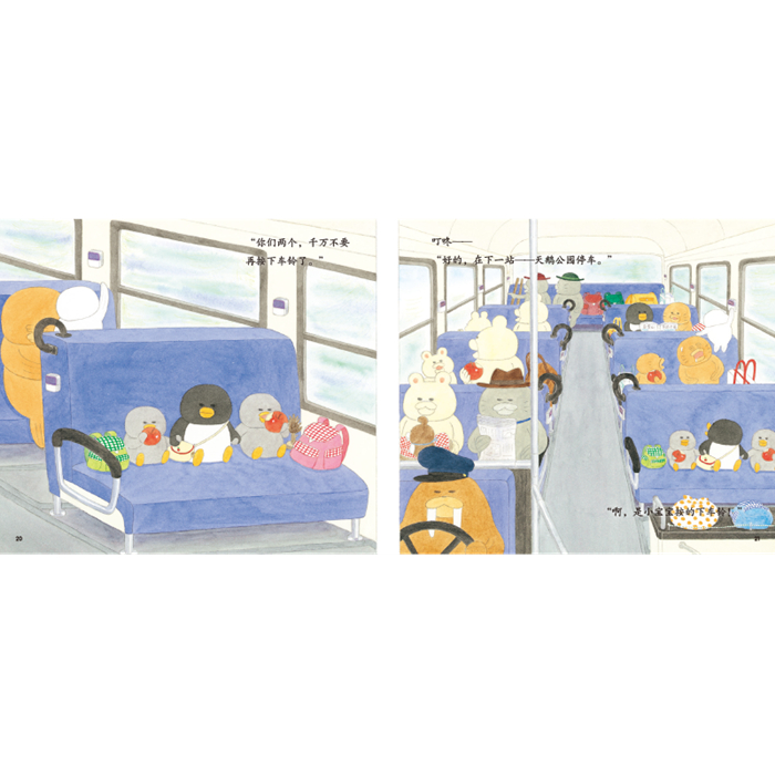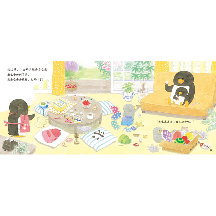 《幸福小鸡系列》和《野猫军团系列》的作者、日本人气图画书作家工藤纪子,专为2-5岁幼儿创作的交通工具旅行图画书,用生动丰富的画面和通俗有趣的故事,展示了从出发去旅行需要准备的东西,到需要乘坐哪些交通工具、其乘坐方法和注意事项,以及不同交通工具会停靠和经过什么样的地方等等内容,涵盖了乘坐不同交通工具去旅行的种种可能情境,帮助孩子了解乘坐交通工具出行的基本常识。 ? 本系列的画面细节非常丰富,非常耐读,不仅栩栩如生地描绘出热闹的站前商业街、丰盛美味的飞机餐、美丽的森林观景台、琳琅满目的机场商店……让孩子仿佛真的跟随着小企鹅姐弟坐着各种交通工具,去各式各样的地方旅行。而且在文字讲述的故事之外,书中还隐藏了许许多多有趣的小细节,能让孩子获得反复阅读、不断发现新的隐藏细节和故事的乐趣,从而锻炼孩子的观察、联想、推理、思考的能力。 ? 作者熟谙2-5岁幼儿的心理,书里面到处都充满了孩子喜欢的东西:圆萌萌的小动物,看着就让人留口水的各种好吃的食物,还有高山、大海、森林、牧场、雪原……各种各样壮观、美丽又好玩的地方…… ? 图画中满溢着暖暖的爱与亲情,小企鹅姐弟去旅行是为了看望爷爷奶奶、外公外婆、叔叔伯伯们,还准备了贴心的小礼物给他们;而小企鹅姐弟在旅行途中也互相关心、互相照顾,后开心又安全地到了目的地。