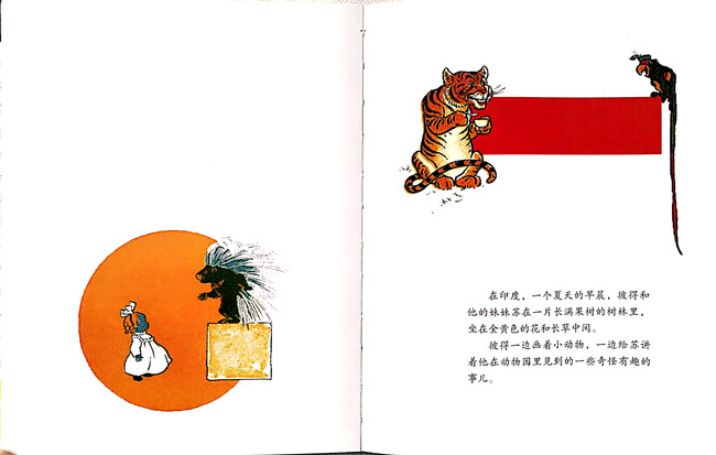 图画中有各种珍禽异兽,有温馨快乐的故事,有充满孩童的想象。这种似真似幻的想象存在于每个孩子的心里。
