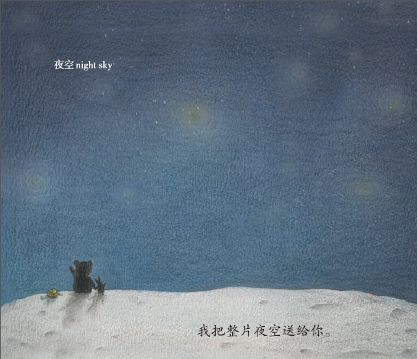 翻开《你想要一颗星星吗》,故事在书名的追问中一点点展开,“你想要一颗星星吗?我把整片夜空送给你。你想要一朵玫瑰吗?我把整个花园送给你。你想要一片枫叶吗?我把整座森林送给你……”在三个相同结构的句子之后,作家将语言的叙述方式一转,变成了“如果你想要一朵白云,我请清风送过来……”出人意料的描述,带来如清风般明澈的阅读世界,同时充满爱的表达,给孩子爱的启蒙。