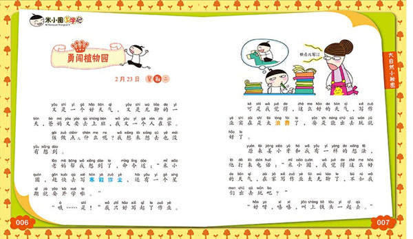 该书是小学低年级拼音读物。米小圈升入了二年级,这是一个美妙的开始。更美妙的是米小圈终于离开了刁蛮的李黎,拥有了一个新同桌徐豆豆。徐豆豆是个特别逗的女孩儿,跟米小圈很像。他们在一起玩得无比开心,同时也闯出了很多祸端。可时间一长,米小圈发现还是李黎好,至少能够阻止他去闯祸。有什么办法可以再和李黎做同桌呢?