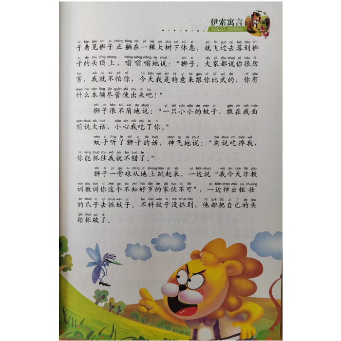 《伊索寓言》相传为公元前六世纪,被释放的古希腊奴隶伊索所著,搜集有古希腊民间故事,并加入印度、阿拉伯及基督教故事,共三百五十七篇。伊索寓言短小精悍,比喻恰当,形象生动,深受人们喜爱。大部分篇目将人比喻为动物来进行讽刺。 如《狼与小羊》、《狮子与野驴》等,用豺狼、狮子等凶恶的动物比喻人间的权贵,揭露他们的专横、残暴,虐害弱小,反映了平民或奴隶的思想感情;《乌龟与兔》《牧人与野山羊》等,则总结了人们的生活经验,教人处世和做人的道理。