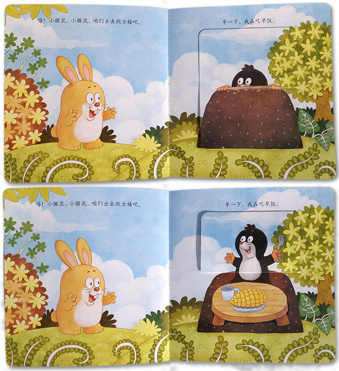 《不拉粑粑的獾宝宝》贪玩的小獾宝宝好几天没拉粑粑了,他把每一分钟都用来和小朋友玩了,他忙着去找小猪、小猴子、小鼹鼠,但是小伙伴们都在拉粑粑。当小朋友们拉完粑粑找小獾来玩的时候,小獾却肚子疼的直不起腰,只好冲进了卫生间。