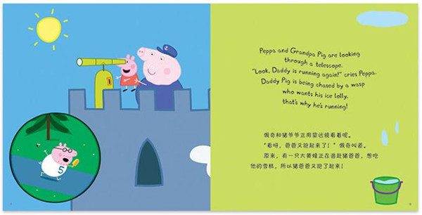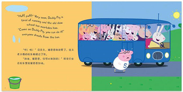在书中,幼儿园的屋顶漏水了,为了修补房顶,猪爸爸举办了一次趣味募捐长跑,却只有猪爸爸一个人参加。大家纷纷捐钱,给猪爸爸加油助威。猪爸爸被大黄蜂一路追赶,终于气喘吁吁地跑到了终点。本书内文为中英文双语编排,一句中文对应一句英文,确保英文地道,适合家长陪孩子一起学习;版面美观,营造愉快的阅读氛围。