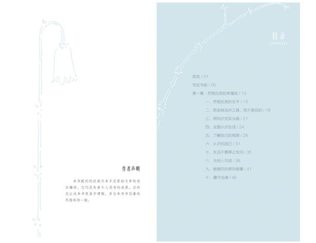 本书是拉斐尔·塔姆博里诺的文学处女座,故事起源于一位父亲的崇高理想,他借助“古希腊”三贤的哲思与智慧,用简单的语言向女儿阐述“幸福”的真谛,帮助女儿成长为具有正确道德观的人,从而更好地面对未来的挑战。本书以书信体的形式,通过通俗易懂的语言使古典哲学思想在现代社会重新焕发生机,并揭示了高度消费的社会里,精神的满足才是长久的快乐,倡导人们树立正确的幸福观。