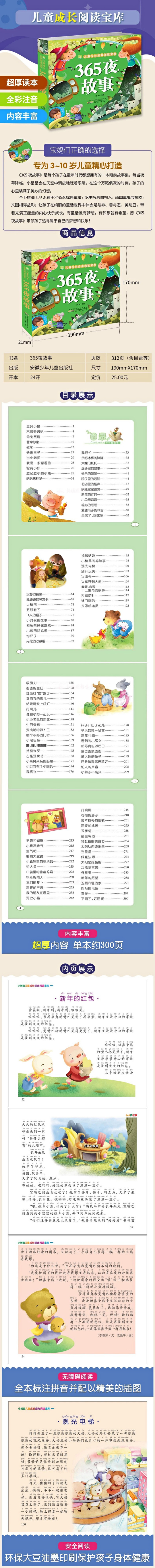 《365夜故事》是“小树苗儿童成长经典阅读宝库”系列中的一本。该书主要针对3~8岁孩子,精选当代中外童话宝库中最受孩子欢迎的故事。它涵盖的题材非常广泛,包含了经典故事、习惯故事、生活故事、品德故事等,插图色彩鲜艳、活泼。此外,该书采用全文注音,可供孩子从亲子共读向自主阅读过渡。引人入胜的故事情节吸引孩子认真阅读,从中体会生活的智慧和丰富的情感,陪伴孩子快乐地度过美好的夜晚。
