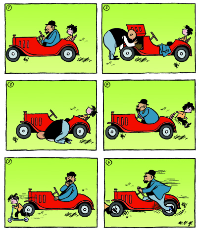 《父与子》中生动幽默的小故事均取材于卜劳恩日常生活中的真实体验,是卜劳恩与儿子克里斯蒂安的真实生活写照。其一幅幅小而精湛的画面跳跃着智慧的光芒,简单的线条里流淌出纯真的父子之情与融融的天伦之乐,直指人心。本作品自20世纪30年代传入中国后,曾受到了鲁迅、丰子恺等人的高度评价,成为家喻户晓的漫画。