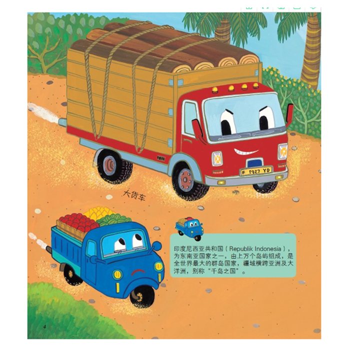 《旅行童话集·GOGO世界旅行:小小拖车的大大梦想》中的每张插图都会说话,图与图之间呈现独特的叙事关系,儿童得以由直觉进入绘本的世界,自然流畅地听故事。由于小朋友识字不多,不能独立阅读,所以绘本的文字,便须要大人代为关读,再说给小朋友听。也就是说,绘本的文字并不是写给小朋友看的,而是让他们听的。