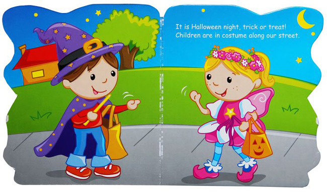 Trick or Treat 也是西方万圣节的一个有趣的版块,孩子们都拿着糖果袋,挨家挨户收集糖果,不给糖果的就会发出威胁,有趣而好玩的一个风俗,所以,小孩子们都很喜欢万圣节,不只有好吃的点心,而且就像一次冒险之旅一样惊险刺激。本书为撕不破纸板材质,讲述了两个小朋友收集糖果的有趣过程,他们遇到了海盗打扮的阿姨,还有木乃伊装扮的小孩......趣味惊险!