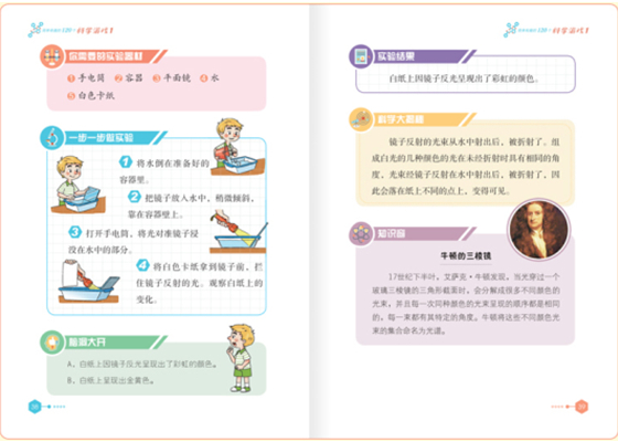《简单有趣的120个科学游戏》包含了多个简单有趣、可操作性强的科学实验。将实验与多格漫画相结合,生动展现生活中常见的物理、化学现象和生物、物质结构特征,并为孩子创造亲自动手做实验的机会,学习隐藏在生活中的科学原理。小读者既能通过有趣的实验学到科学知识,又能感受到科学的神奇与强大。