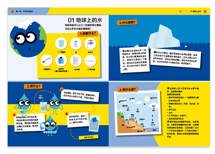我们喝的水是从哪里来的?它是怎么出现在我们面前的?哪里的水浮力*?在水中如何生活和呼吸?怎样制造一道彩虹?一朵云里会发生些什么事?洋流是怎样形成的?如何对水进行清洁?