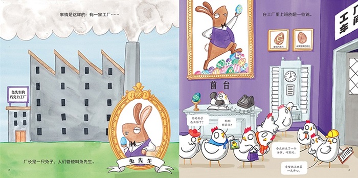 兔先生有一家巧克力蛋工厂,在工厂里上班的是一些勤勤恳恳的鸡们。有的鸡负责调制巧克力,有的鸡负责吃下巧克力并产下巧克力蛋,有的鸡负责包装和装箱。