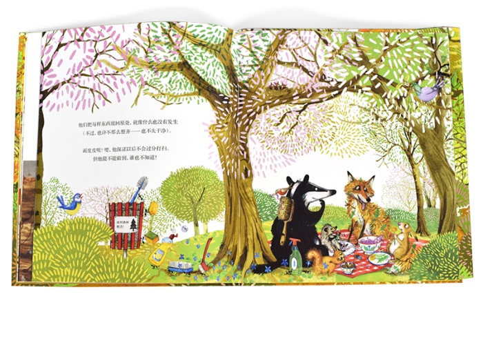 关于过犹不及的环保题材图画书。一只名叫皮皮的獾住在森林里,特别喜欢整理。他每天忙着整理花草、树枝,帮小动物梳毛、洗澡,就连岩石也擦得干干净净。秋天,树叶飘落,忙坏了皮皮。他把所有树叶都打扫干净,还觉得不够,又把大树一棵一棵拔走。可是这时下起暴雨,洪水袭来,冲得到处都是烂泥。皮皮无法忍受,找来推土车、搅拌机和混凝土,把到处都铺上了水泥。这下没有了落叶和烂泥,但是皮皮也回不了家,找不到食物可吃。他才恍然大悟,自己做错了事情。可是,这一切还可以弥补吗?