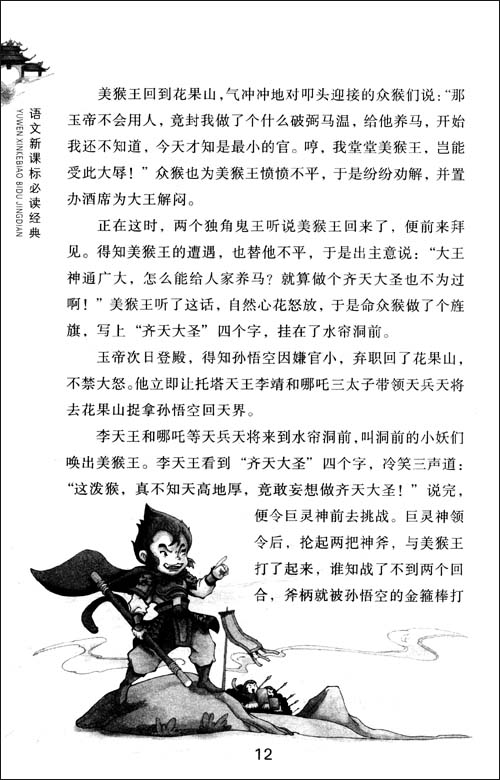 《语文新课标必读经典•西游记》是一部神魔小说,小说的最大成就是塑造了一批各具特色的人物形象:神通广大的孙悟空,贪吃懒惰的猪八戒,老实憨厚的沙和尚,一心向佛的唐僧,救苦救难的观音菩萨,佛法无边的如来佛祖……其中,最具特色的人物形象就是大闹天宫的孙悟空,他的七十二般变化,腾云驾雾的本领,敢作敢当、敢爱敢恨又喜欢耍些小聪明的性格,都会让人过目不忘。