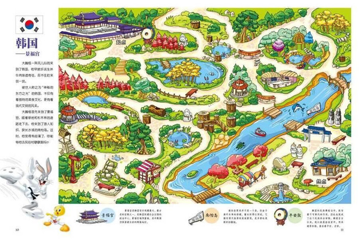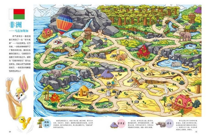 以世界人类文明为主题,内容涵盖文学、历史、自然、生物等人文社科知识;精心绘制的跨页大迷宫,展示了生动有趣的世界风貌,还隐藏了很多百科知识。每个迷宫都配有简洁严谨的文字说明,并对每个主题的背景予以解释、介绍。我们的主人翁兔巴哥和崔弟会带你去到一个个神奇的地方,开始神秘的冒险之旅。你会看到雄伟的万里长城、令人心旷神怡的夏威夷海岛、古老的埃及金字塔;你还能品尝到各国风味食品,欣赏传统的民族服饰,结识有趣的野生动物,拜访名胜古迹……让孩子大开眼界的同时,还能快乐地玩游戏,在不知不觉中看到更多的海外风光,学习丰富多彩的世界地理和人文知识。