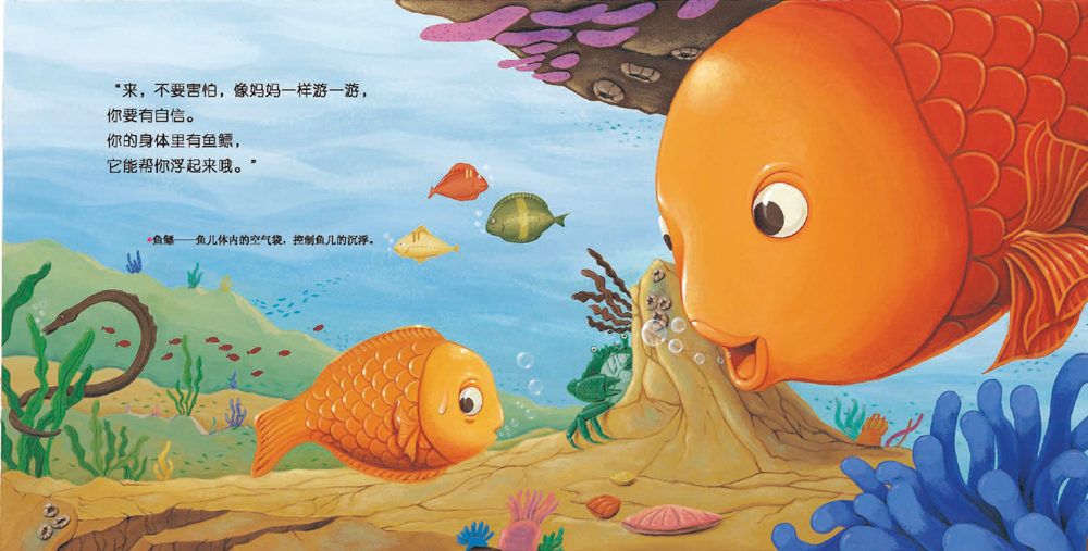 小鱼学会游泳了吗?他有没有听妈妈的话呢?在“知道更多”环节,让我们一起了解鱼儿为什么会游泳,以及它们的身体结构和生活习性吧。