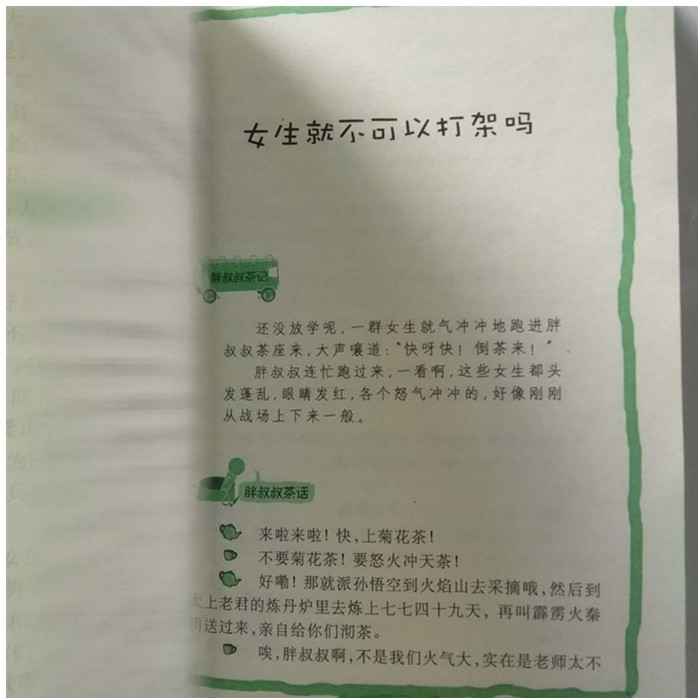 我不知道孩子们究竟是喜欢喝“鸡汤”还是喝“茶汤”,也不知道孩子们的心灵究竟是需要“鸡汤”还是“茶汤”,不过小女孩亮晶晶的黑眼珠一直在我眼前闪现。于是,“胖叔叔茶座”便正式开张了。