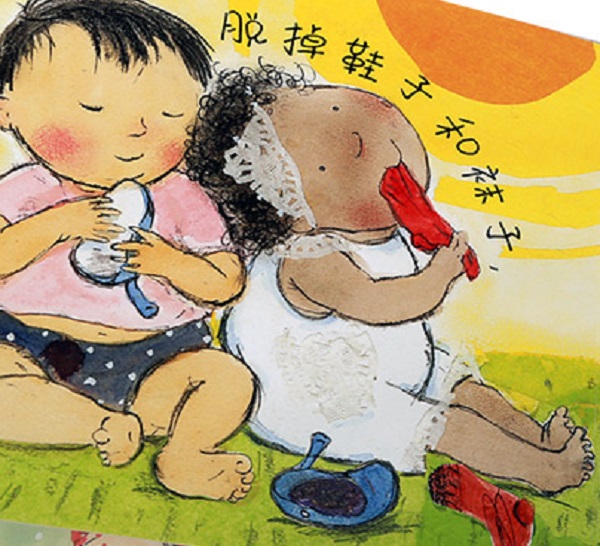 语言简单、活泼、明快,充满童趣。书中有丰富的象声词、叠音词,帮助宝宝进行发音练习。另外,充满节奏感和韵律感的语言,更易于被0-3岁宝宝接受和模拟,从而促进他们的语言发展。