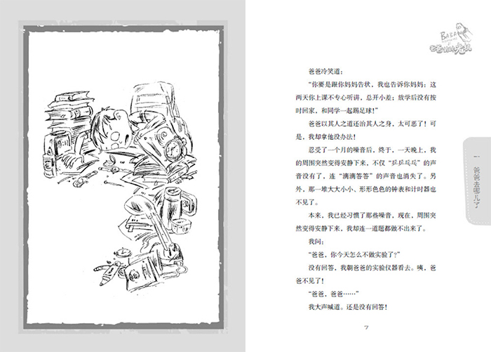 最近一段时间,爸爸迷上了各种和时问旅行有关的科幻小说、电影、漫画和动画片,比如《时间机器》《回到未来》《源代码》《未来警察》等等,还让我从图书馆里借了许多大部头的理论书,比如《相对论》《时间简史》《宇宙大爆炸》等等。这倒没什么,爸爸还满口怪话,一会儿回到过去,一会儿又奔到未来,还杀祖父、出车祸、在树上刻字什么的,都是什么乱七八糟的?快把我的脑袋搅成糨糊了,是可忍,孰不可忍!我终于爆发了!“杨歌,快把我放下来!我刚才说的可是著名的‘祖父悖论’和‘时间旅行悖论’啊!”爸爸的小胳膊小腿不停地划动着,大声说道。