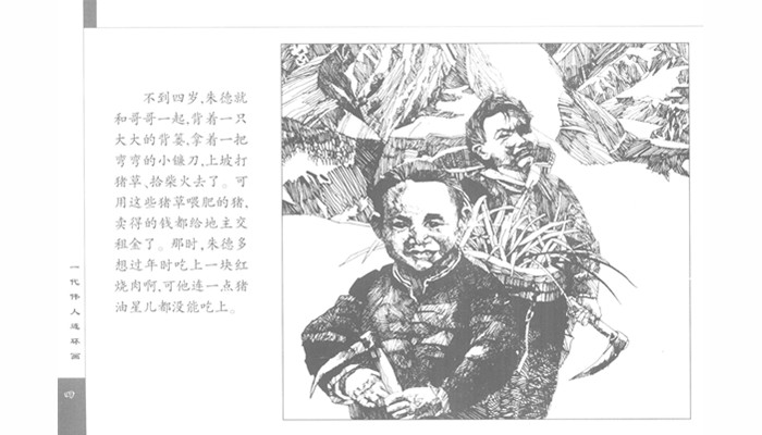 本书是“一代伟人连环画”丛书中的一本。它用180幅图文结合的连环画故事画面,生动、形象地概括讲述了老一辈革命家朱德光辉、朴实的一生。全书共分二十九个小标题,每一个标题都记叙了朱德一生中的某个重要片段或是反映出朱德的某些性格特征。从朱德生活贫寒、刻苦读书的青少年时代,写到他执着探索、追求光明之路,坚定地投身革命,保存革命火种,将革命队伍带上井冈山与毛泽东领导的秋收起义部队会合,并一同粉碎国民党反动派的数次会剿、围剿的战斗历程;还描述了朱德在长征路上克服种种自然、人为的障碍,对红军三大主力胜利会合做出的贡献,以及他在抗日战争期间英勇、机智地领导八路军与游击队开展对敌战斗及开发南泥湾、促进后方大生产发展的事迹;后写到朱德领导中国人民解放军胜利解放全中国,及他建国后对三军及工、农、商各方面的关心、指导与他革命到底的崇高、无私的革命境界。