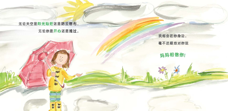 ★在这一绘本中,作者采撷生活中的片断,展现孩子成长的瞬间,或沮丧或迟疑、或害怕或伤心。然而,一个画外的声音去永远在默默地鼓励着孩子,“我相信..”。