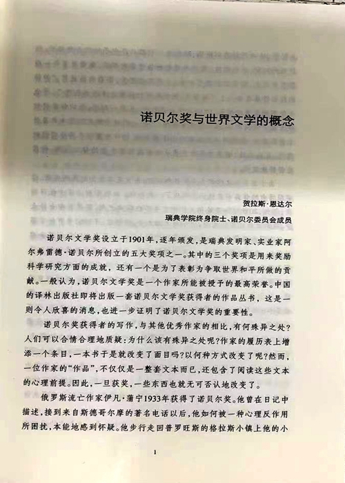诺贝尔文学奖设立于1901年,逐年颁发,是瑞典发明家、实业家阿尔弗雷德·诺贝尔所创立的五大奖项之一。其中的三个奖项是用来奖励科学研究方面的成就,还有一个是为了表彰为争取世界和平所做的贡献。一般认为,诺贝尔文学奖是一个作家所能被授予的最高荣誉。中国的译林出版社即将出版一套诺贝尔文学奖获得者的作品丛书,这是-则令人欣喜的消息,也进一步证明了诺贝尔文学奖的重要性。 诺贝尔奖获得者的写作,与其他优秀作家的相比,有何殊异之处?人们可以合情合理地质疑:为什么该有殊异之处呢?作家的履历表上增添一个条目,一本书于是就改变了面目吗?以何种方式改变了呢?然而,位作家的“作品”,不仅仅是一整套文本而已,还包含了阅读这些文本的心理前提。因此,一旦获奖,一些东西也就无可否认地改变了。