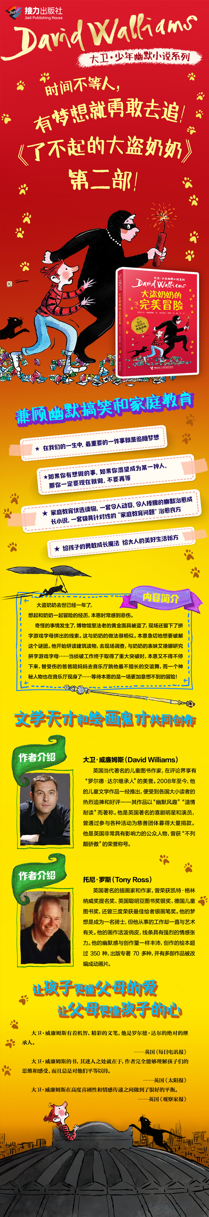 ★大卫•少年幽默小说系列又添新作 ★《了不起的大盗奶奶》第二部! ★大盗奶奶又回来了!她的真实身份到底是谁? ★时间不等人,有梦想就勇敢去追! ★英国国家图书奖童书奖获得者的全新力作 ★曾获凯特•格林纳威奖提名奖、英国聪明豆图书奖银奖、德国儿童图书奖的英国著名插画家托尼•罗斯绘制插图 ★该系列作品荣获红房子儿童图书奖青少年读者大奖、英国人民图书奖儿童读物奖、英国《泰晤士报》年度儿童图书奖、英国林肯郡儿童图书奖 ★家庭教育优选读物,一套令人动容、令人捧腹的幽默治愈成长小说 ★给孩子的勇敢成长魔法,给大人的美好生活秘方 ★英国图书馆需要提前一个月预约借阅的热门图书 ★以30多种文字出版