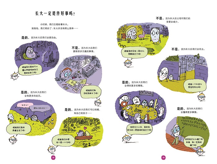 l 我女儿10岁,一拿到书就被它逗乐了,马上一页一页地读了起来。书里的哲学内容(变老、爱、羞愧……)不是概念化的,而是哲学思想在生活中的运用,和她的生活息息相关。因为这本书,她学到了很多东西。
