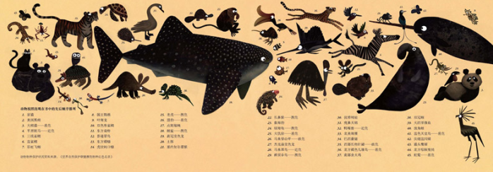 附录有92种动物的名称及其生存现状,知名童书推广人余治莹老师翻译、导读,中科院动物所专家黄乘明教授专业审校。