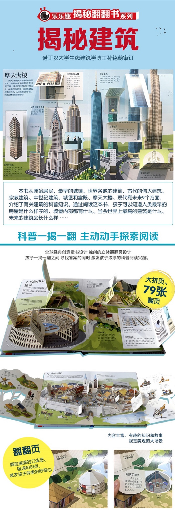 建筑与人类的生活密不可分。建筑不仅用来居住,含蕴含了丰富的文化内涵,同时反映了人类科技的进步。《揭秘建筑》从原始居民、*早的城镇、世界各地的建筑、古代的伟大建筑、宗教建筑、中世纪建筑、城堡和宫殿、摩天大楼、现代和未来9个方面,介绍了有关建筑的科普知识。通过阅读这本书,孩子可以知道人类*早的房屋是什么样子的、城堡内部都有什么、当今世界上*的建筑是什么、未来的建筑会长什么样……