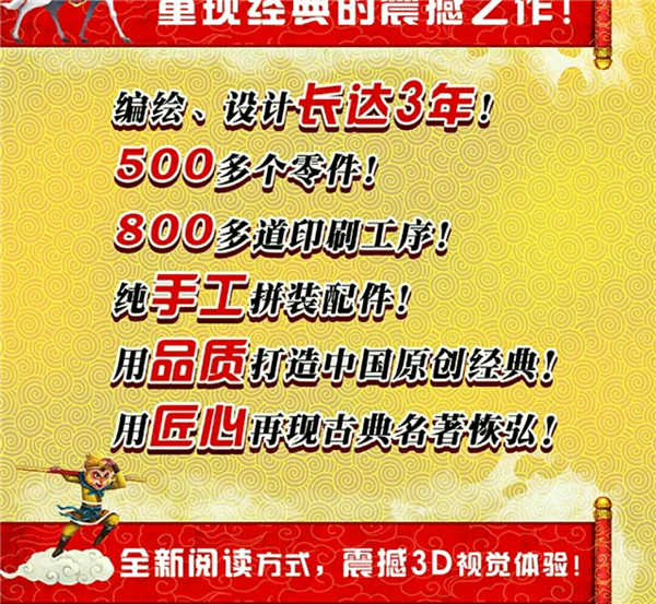 《西游记》是广大少年儿童*喜爱的古典文学名著。孙悟空、猪八戒、沙僧、唐僧的形象源自于古老而灿烂的中华文明,他们的精神、道德和人格力量,深深地影响着一代又一代的中国孩子。