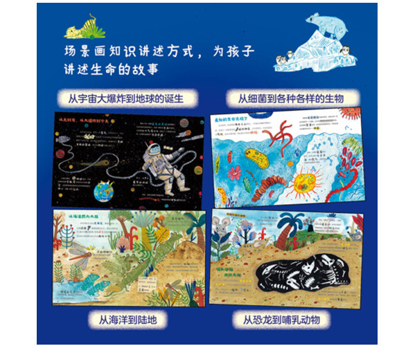 生命进化的过程是非常漫长的,在漫长的生命史中究竟发生了什么? 《生命由来科学绘本》是为孩子打造的一本生命启蒙绘本。绘本挑选了生命史上的大事件解释了生命的进化过程,并通过各种自然景观、动植物的生存方式及动植物与环境的关系,告诉孩子们珍惜动物和保护大自然的重要性。本书的特色在于采用充满童趣的绘画风格配合通俗易懂的文字,真实还原生命进化过程的不同场景,带给孩子如同身临其境的阅读体验。