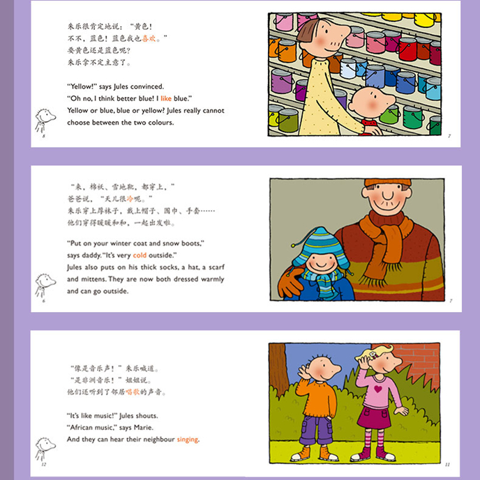 朱乐是一个好奇求知、乐观开朗、天真友爱的学龄前儿童。“阳光小先生·朱乐双语图画书”系列讲述了朱乐在家中、和朋友之间、在幼儿园里的生活种种。在一个个小故事中,朱乐在成长着,不仅是知识,还有情商——完善自我,树立自信,学会独立、自律、解决问题,培养责任心,熟悉人际交往,收获乐观、阳光……