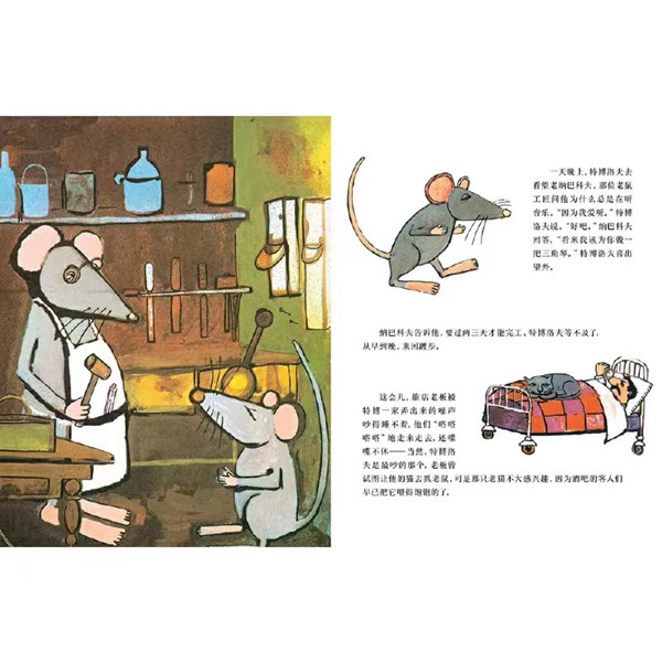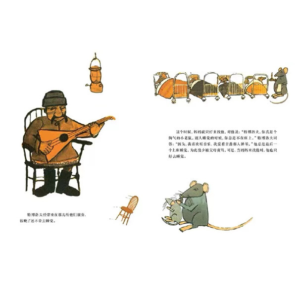 小老鼠特博洛夫特别喜欢音乐,也非常想学习演奏音乐。他和家人住在一家酒吧,每天听着音乐家们演奏。一天,音乐家们要离开酒吧了,小老鼠舍不得他们,悄悄地告别家人,跟着音乐家们走了……家人焦急地去找他,他能学到技艺吗? 凯特·格林纳威大奖得主,约翰·伯宁罕作品,阿甲翻译。