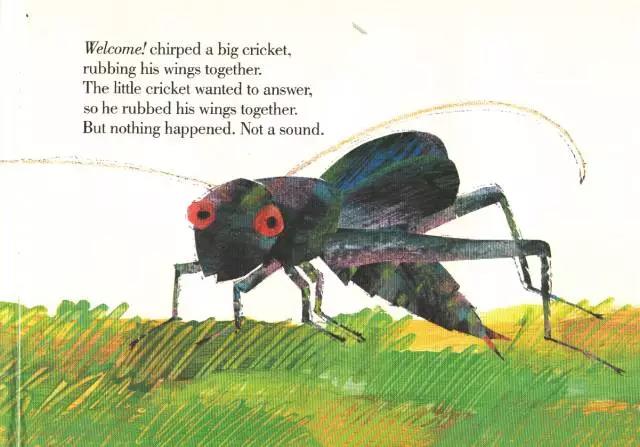 《The Very Quiet Cricket》。这本书讲述了一只刚出生的小蟋蟀,遇到了许多昆虫朋友,朋友们用自己的方式跟他打招呼,他一路回应这些昆虫朋友,终于发出了属于自己的声音。不同的昆虫,会发出不同的鸣叫声,这个绘本向我们展示了一个奇妙的昆虫世界。让我们一起走进神奇的昆虫世界吧!