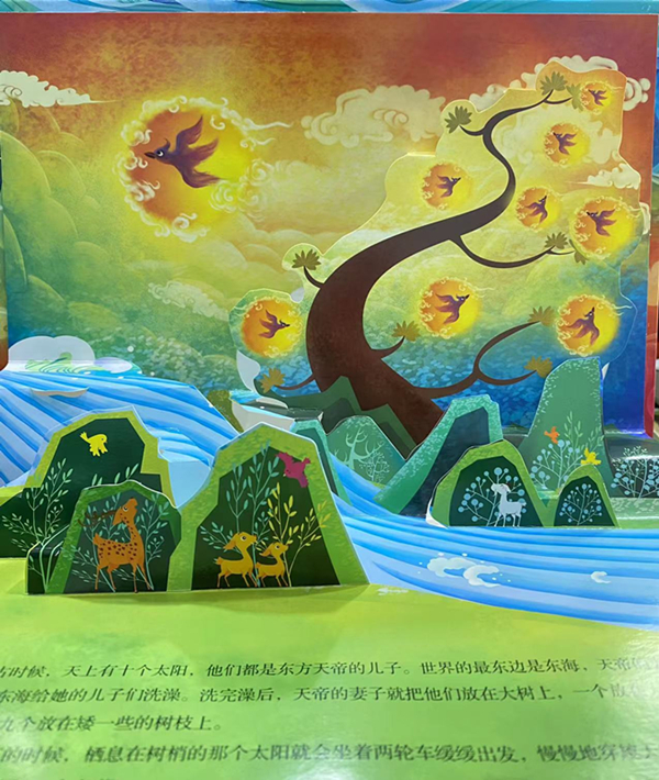 这套神话故事立体书,文字优美,选用精美画风配画。这套书将中国文学经典和现代纸艺完美融合,用立体纸艺的表现形式激发儿童的阅读兴趣,充分调动儿童的阅读积极性,让儿童在轻松、快乐的氛围中学习中国神话传说故事,了解古老的传统文化。通过阅读《后裔射日》这本书,孩子们可以了解神射手后羿把天空中的十个太阳射掉九个,救人民于水火之中的故事。后羿敢于与自然搏斗,愿为大众奋斗牺牲,不畏来自天界的惩罚,这种大无畏的勇气和胆识,是这个神话想要传达的核心精髓。