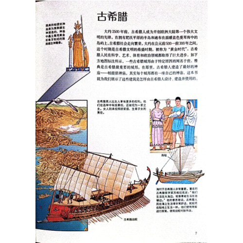 套书以建筑为核心线索,分别从艺术、科技、文学、地理、宗教等多方面展现文明史的进程。历经20余年,英国知名历史学家、博物学家、语言学家、博物馆馆长、铁路公司高管、教师、作家、绘者共同探讨,选择zui好的见证历史发展的典型建筑,共同创作! 书中1000余幅细节放大图,100余幅大型剖面图,帮助孩子清晰地感受文明进程的全景,也从建筑中读懂更多维度的文化内涵,出国旅游! 由专家附注索引和大事记,使之当之无愧为英国学生推崇的“多图式工具书”。 《古埃及金字塔》 金字塔是怎样建造的?金字塔为什么叫作金字塔?你知道哪些著名的金字塔?建造金字塔的工匠们在工地都做些什么,他们是怎样生活的? 带着这些疑问我们翻开《古埃及金字塔》。这本书不仅告诉我们金字塔是如何建造的,告诉我们修建金字塔的工人们来自何处,如何工作,如何生活。不知道你有没有看过《史前一万年》这部电影,显然,本书将带给你对古埃及统治者和古埃及人民不同的感受和认识。