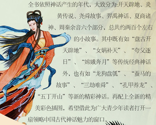 本书是在袁珂先生的《中国古代神话》的基础上,精选出来的一本中国古代神话故事集。 全书依照神话产生的时间先后大致分为六部分:开天辟地、炎黄传说、尧舜故事、羿禹时代、夏殷诸神、周秦余音,总共约200个左右的小故事,包含有诸如“盘古开天地”、“女娲补天”、“夸父逐日”、“后羿射日”、“嫦娥奔月”等古代优美神话。图文相益,借此向青少年读者全面展示中国古代神话的魅力。