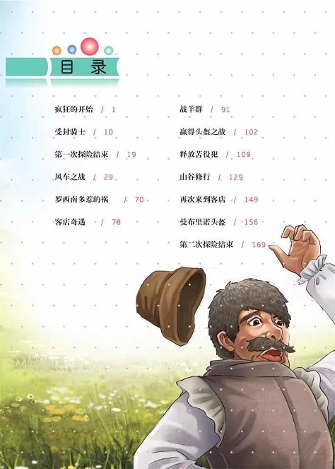十七世纪西班牙有个名叫吉哈达的乡村绅士,他整天沉迷于骑士传奇,结果以为自己也成了骑士;他把名字改成“堂吉诃德”,因为这样听起来颇像骑士;他又找了一个农民做他的待从,然后,便穿上盔甲,骑上瘦马,开始了游侠冒险的经历。他把风车当巨人,把客栈当城堡, 还把羊群当军队,闹出了许多笑话,吃了不少苦头,直到临终时才明白过来。