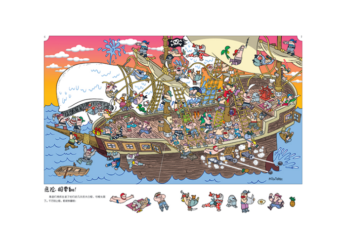 《快乐找找看:专注力训练游戏书》共3册,每册一个主题——哦,不!如果这么平庸,怎么能显出这套书的与众不同呢? 好吧,重新介绍一下——《快乐找找看:专注力训练游戏书》共3册,但因为这位来自足球王国的作者思维太活跃,所以每册的主题都不明确,小编只能说里面有骑着扫帚毛笔飞行的魔法师,有攀登大厦海盗船的蜘蛛侠,有正在吃比萨饼的史前人,有在空间站打高尔夫球的宇航员,还有玩滑板的法老……(画外音:咦,好像哪里不对劲?) 不光这样,爱搞怪的作者还让书中的角色来回“串场”,所以,如果在几册书中找到了同一个东西,你可不要惊讶哦——如果真的能找到的话~ 还有,作者连自己的名字都不放过——他还把自己的名字也画到了画里。让孩子一找到自己的名字就兴奋得大叫,作者你也真是够了[捂脸]。