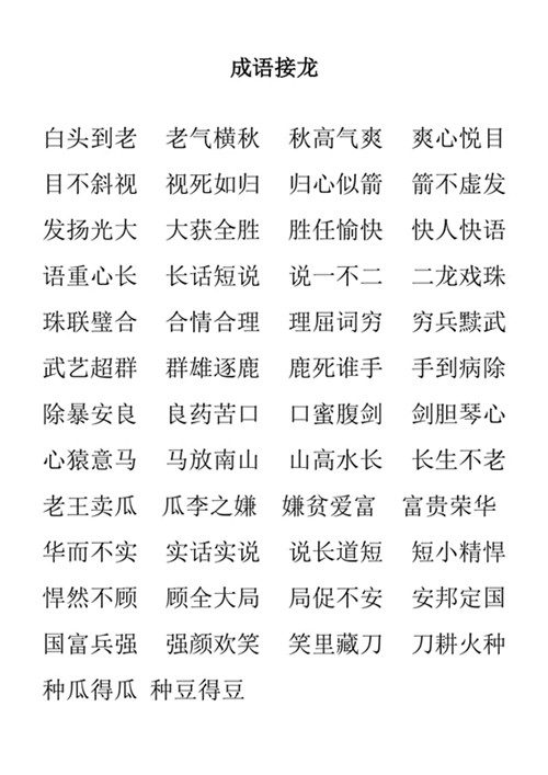 《成语接龙游戏000条》选取了1000条成语,基本涵盖了小学生课本中常出现的成语词条。趣味接龙“成语接龙接不停”将1000条成语从头接龙到尾,让你尽享接龙的快乐。详尽释义“翻翻成语小词典”对每个成语词条进行了详尽的解释,结合“附录”使用,让你如同拥有一本详尽的小学生常用成语词典,随用随翻,方便快捷。 精彩例句“翻翻成语小词典”还为每个成语词条配备了精彩的例句,帮助你更好地理解成语的含义和熟悉成语的运用。成语故事“成语故事读乐园”中有大量精彩的成语故事,让你尽享缤纷多彩的故事情节,了解成语形成的历史典故,深刻理解成语的内涵,拓展你的知识面。趣味游戏“成语游戏乐翻天”精选了23个主题的成语游戏,让你一边玩一边学,充分体验玩中学成语的快乐!成语练兵“成语大练兵”将你带入成语运用的训练场,考验你对成语的熟练程度,提升你对成语的运用能力,使你的写作妙笔生花,使你的文章妙语连珠。