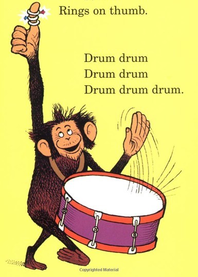 A madcap band of dancing, prancing monkeys explain hands, fingers, and thumbs to beginning readers.