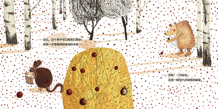 第一次霜冻。 棕熊奥斯卡嗅到了空气中寒冷的气息。 睡鼠莱罗说:“冬天来了。” 整个冬天,它们都会在睡眠中度过。 它们想把所有的回忆写在信中,寄给它们的朋友让。 但莱罗和奥斯卡都不会写字…… 于是,它们把可以唤起夏日森林回忆的点点滴滴放进信封中, 做成了一个独特的茶包。(*为什么会是“茶包”呢?随书视频将为你揭晓。) 【编辑推荐】 *随书附赠本书专属动画视频+信封+3张精美明信片。 这个绘本为我们提供了一个多么美好而纯真的想法,收集代表时间和季节的事物,只为与朋友分享夏天的回忆。无论是这个故事还是随书专属动画视频,一定能带给你惊喜! ★比利时绘本大师安·艾珀和欧洲著名童书出版社Casterman联手打造,风格独树一帜,富有创新精神和哲思意蕴。 安·艾珀的感性、想象力和艺术天分,令她笔下的绘本及童话故事清新脱俗,充满诗意...