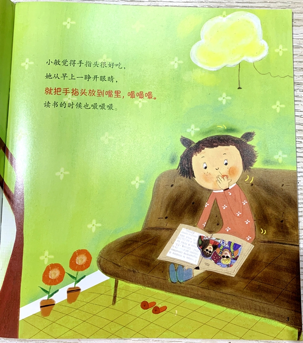 无论做什么事,小敏都先把手放进嘴里嘬嘬。妈妈多次说过不让她这样做,可小敏觉得嘬手指是件很舒服的事。非常偶然的一次机会,小敏看到了显微镜下的手指,有很多我们看不到的细菌!从此,小敏改掉了吃手的坏习惯。