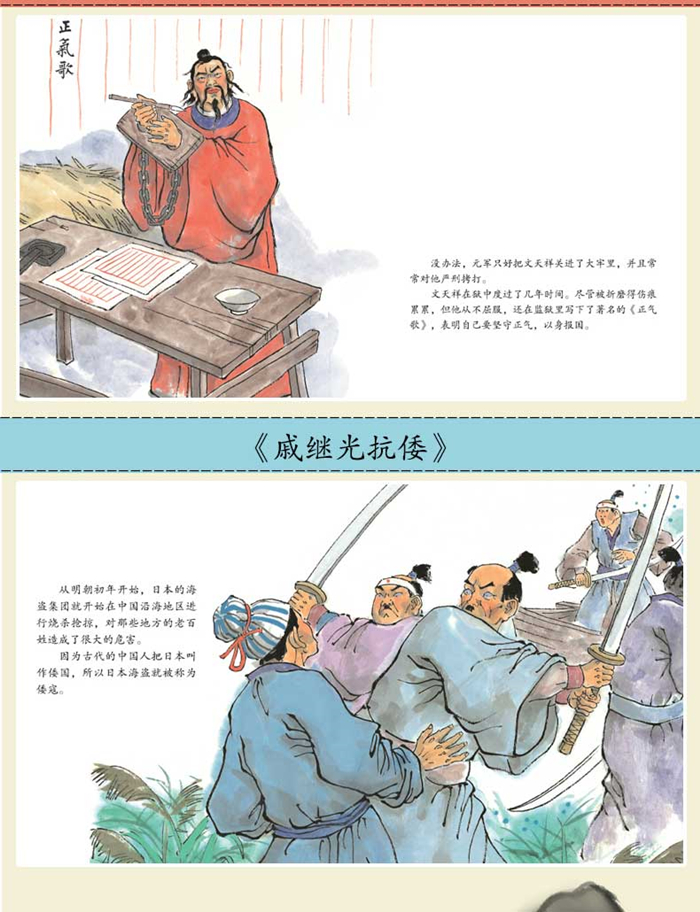 本图书是根据历史上有卓越贡献的英雄人物的生平事迹改编而成的。书中选取为保卫祖国领土奋斗一生的郑成功,有维护祖国和人民利益的林则徐,有抗击外敌的霍去病、戚继光和岳飞,有为气节顽强抗争的文天祥。本书邀请国内知名冰心奖获奖作家对这些传奇人物的故事进行了艺术化改编,采用水墨风格的绘画来绘制这些古代人物的事迹,以绘本的形式呈现在小读者(3-6岁)面前。让小读者们深入了解这些为了国家和人民利益而奋斗的英雄人物。