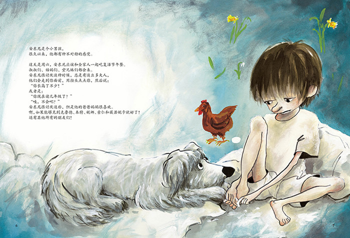 有一天,好像有奇怪的事情发生了。安东尼像是被一支忧郁之箭射中。他忽然觉得,在学校学到的那些都没什么意思。在安东尼睡觉前,妈妈问他:“是不是有什么不对劲?”但安东尼只是回答:“没什么事情,妈妈!”这感觉就像是—安东尼房间里所有的色彩都不见了。不管是墙上的海报,还是床上的被子,都失去了颜色。所以安东尼躺在床上,头脑一片空白。第二天早晨,安东尼想要告诉妈妈,自己的心上有一支忧郁之箭。但是妈妈不明白安东尼说的是什么。忧郁之箭?妈妈从来没有听说过……